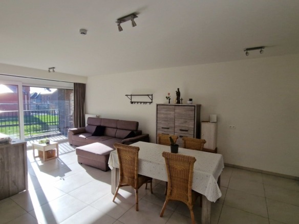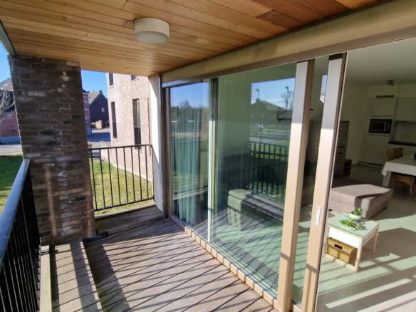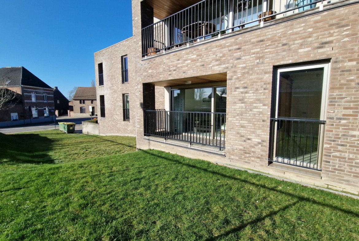Het gelijkvloerse appartement omvat één grote slaapkamer, een ruime berging, de leefruimte met een ideale zuidelijke oriëntatie, veel natuurlijke lichtinval en is voorzien van een volledig geïnstalleerde keuken. De comfortabele badkamer heeft een grote douche, wastafel en toilet en biedt ook een aparte toegang tot de slaapkamer. Er is een ruim en gezellig overdekt terras verbonden aan de leefruimte. In de kelder is tevens bergruimte voorzien, evenals een exclusieve parkeerplaats voor het appartement.