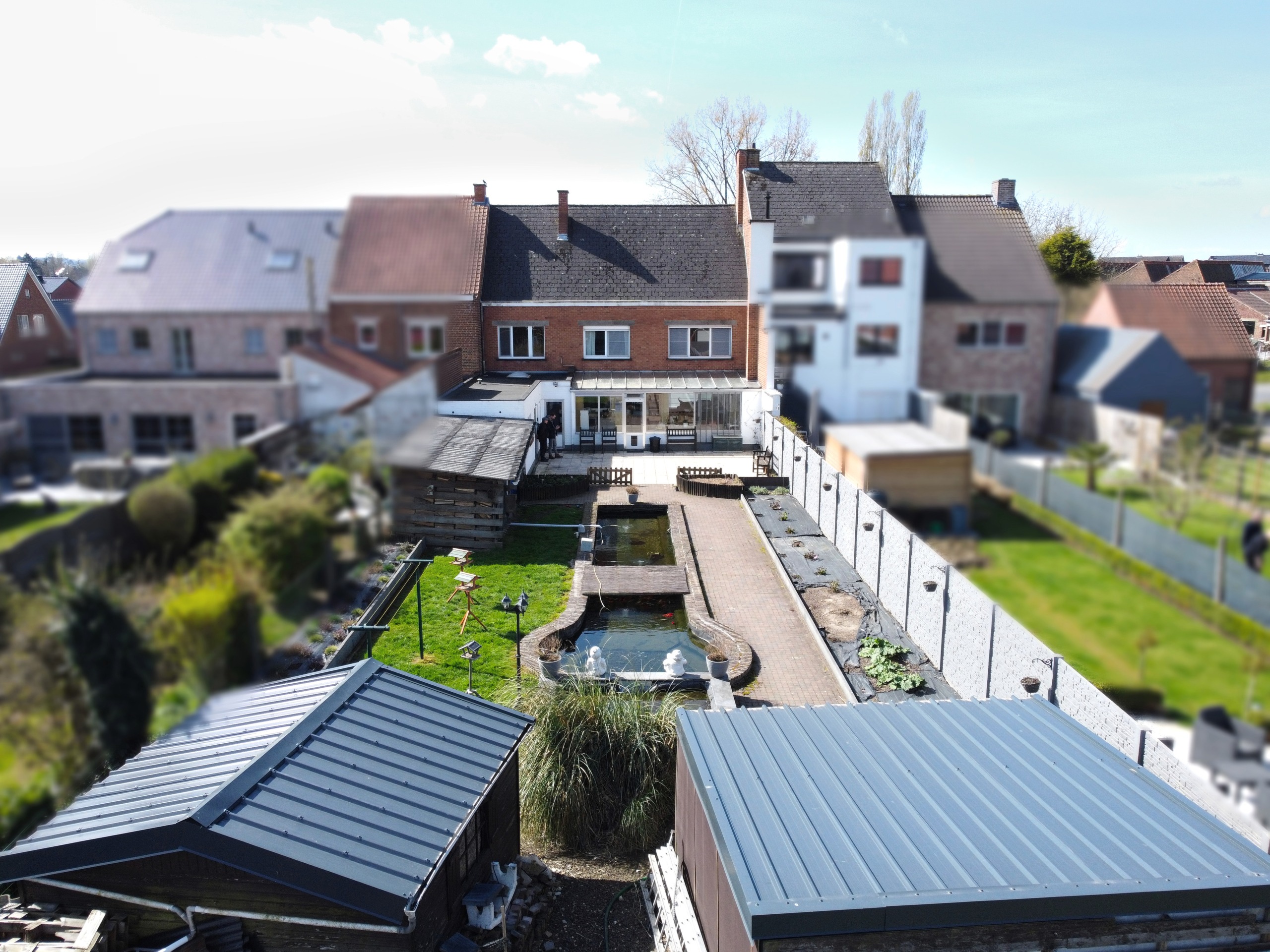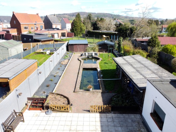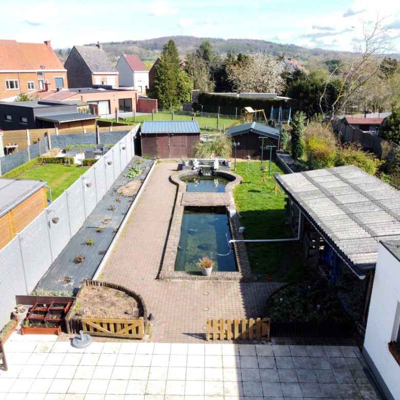 Op een rustige locatie nabij het centrum van Ronse vinden we deze heel goed onderhouden en grote woning terug. Via de ruime inkomhal betreedt u de aangename met licht overgoten leefruimte van 35 m² groot, voorzien van een mooie natuurstenen vloer en inbouwspotjes. Langs de inkomhal is er ook onmiddellijk toegang tot de verzorgde keuken van 13,5 m² met zicht op de aangename tuin. Er is tevens toegang tot een droge kelder. Langs de leefruimte bereiken we de veranda van 26 m² waar het aangenaam vertoeven is. Via deze veranda is er ook toeging tot de berging, toilet en de garage van 27 m² met automatische sectionaalpoort. De veranda geeft uit op het mooi terras en de tuin, met proper atelier, voldoende stockageplaats en twee verzorgde tuinhuizen. Ook is er een mooie aangelegde vijver die zich perfect leent voor een frisse duik bij warm weer. Zalig vertoeven is het hier!