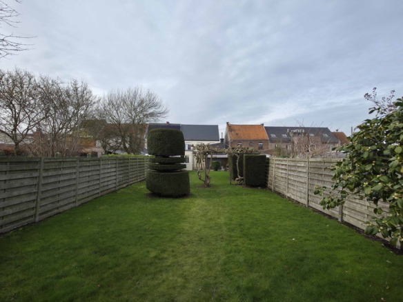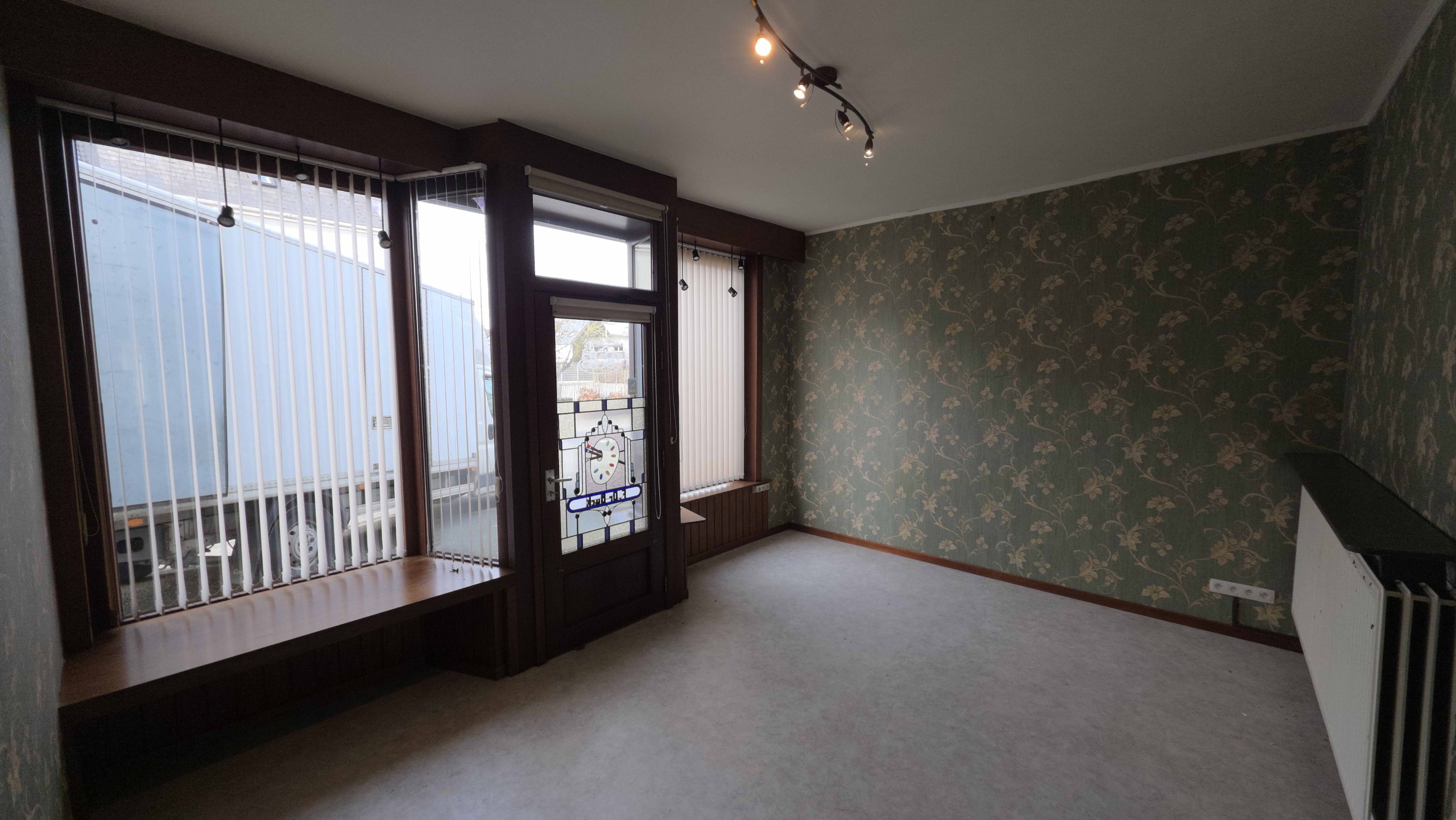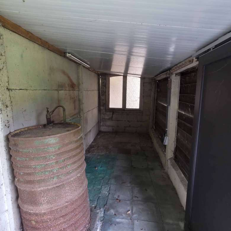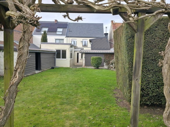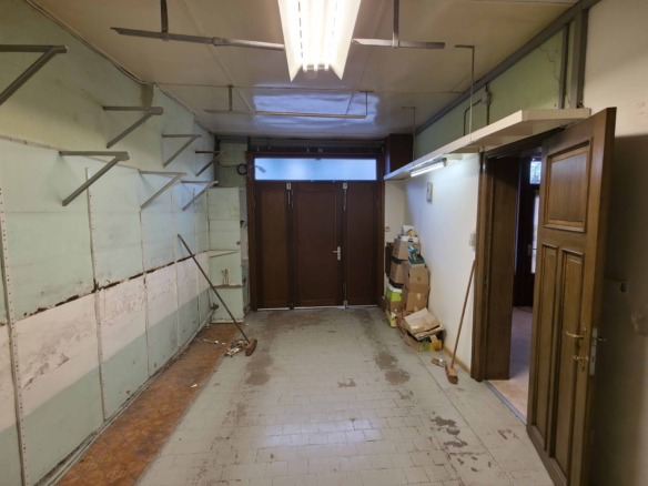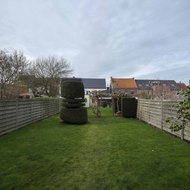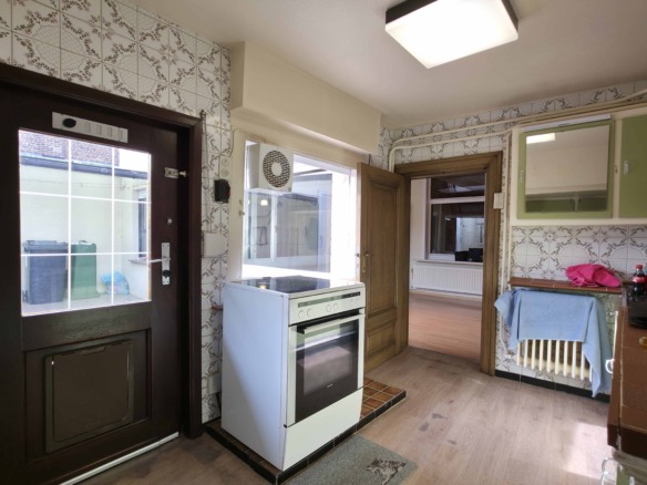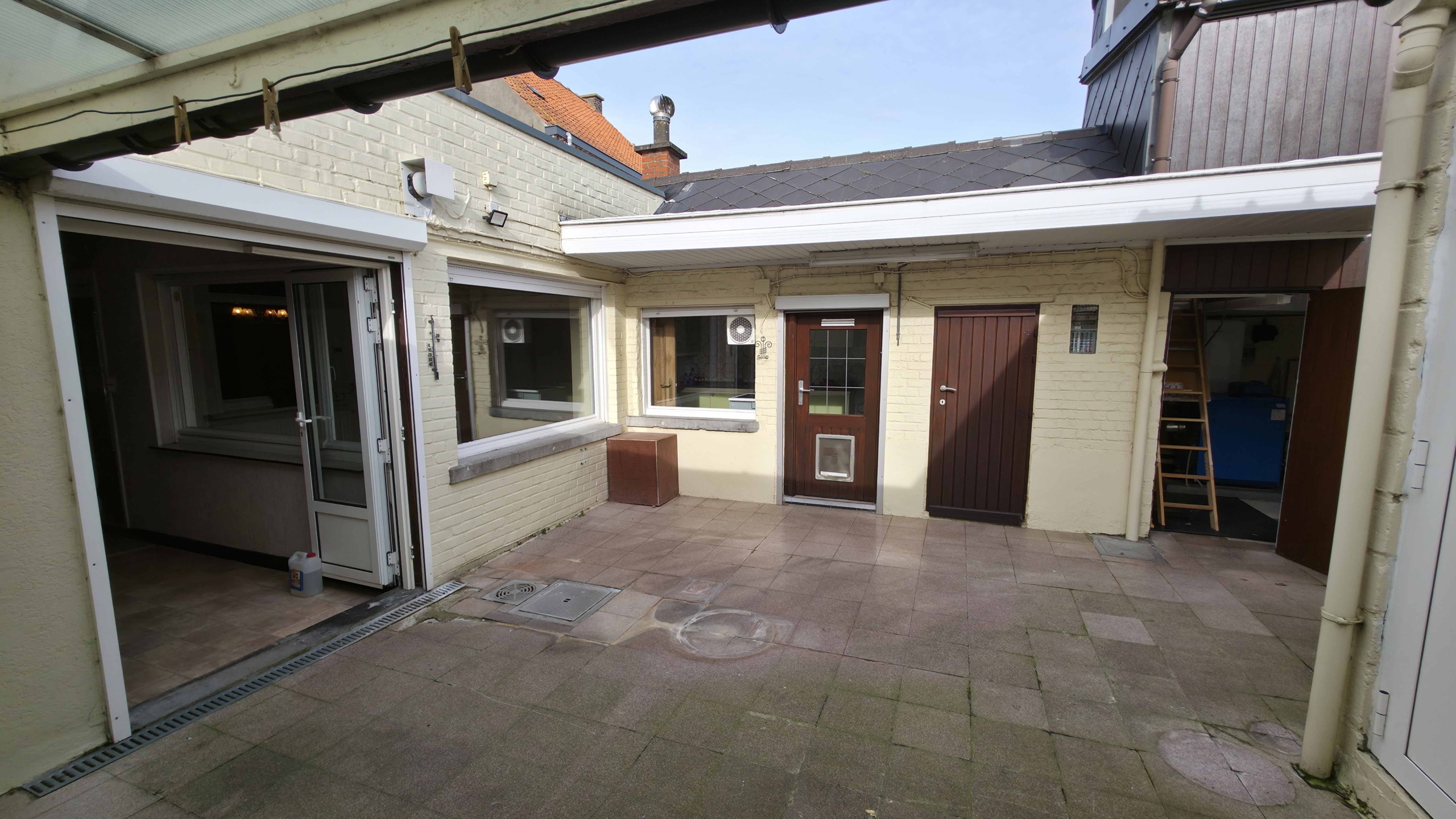 Bij binnenkomst betreedt u de woning via de voormalige winkelruimte, die toegang geeft tot de leefruimte met traphal en rechts de grote garage. Langs de leefruimte is de droge, propere kelder bereikbaar. Achter het hoofdgebouw vindt u een living en eetplaats onder het platte dak, met aansluitend een keukenruimte. Achter de keuken bevindt zich de technische ruimte met mazoutbrander en een badkamer met douche en lavabomeubel. Het apart en verzorgd toilet is ook toegankelijk langs het privatieve terras/koer. De woning is voorzien van rolluiken en deze zijn deels elektrisch op het gelijkvloers.