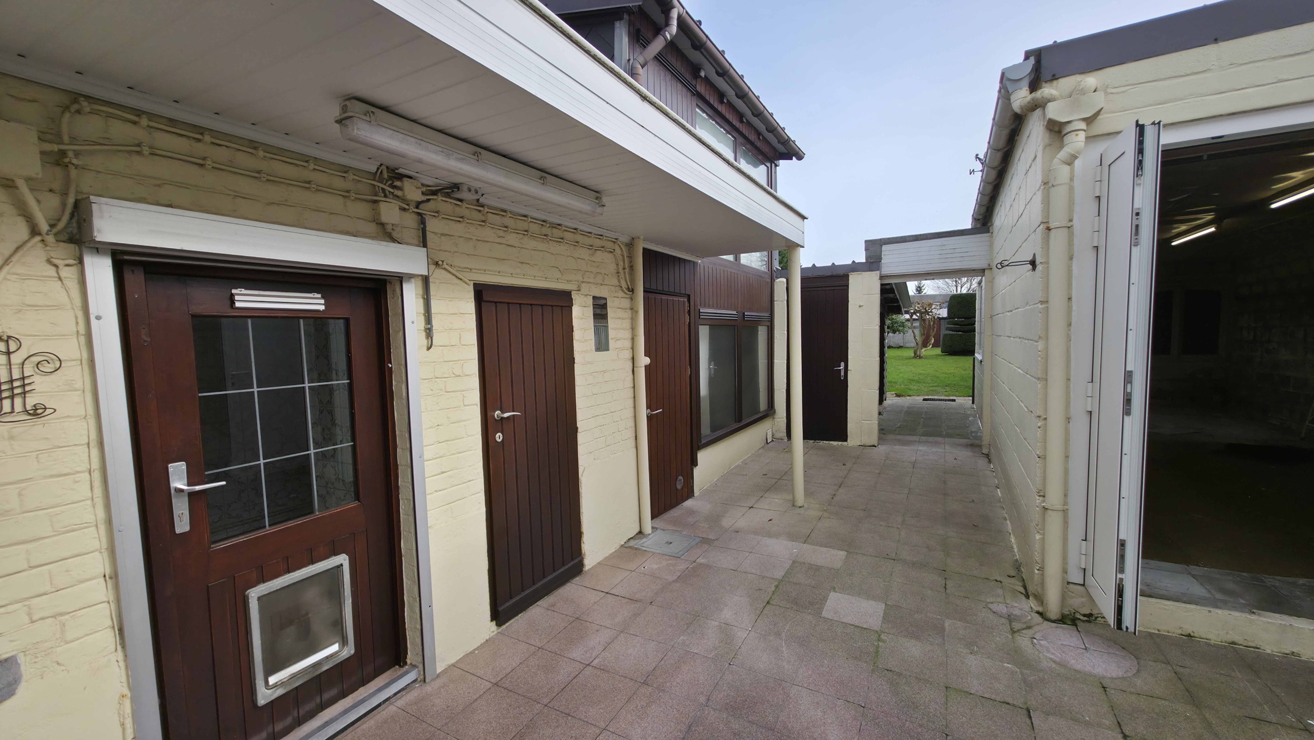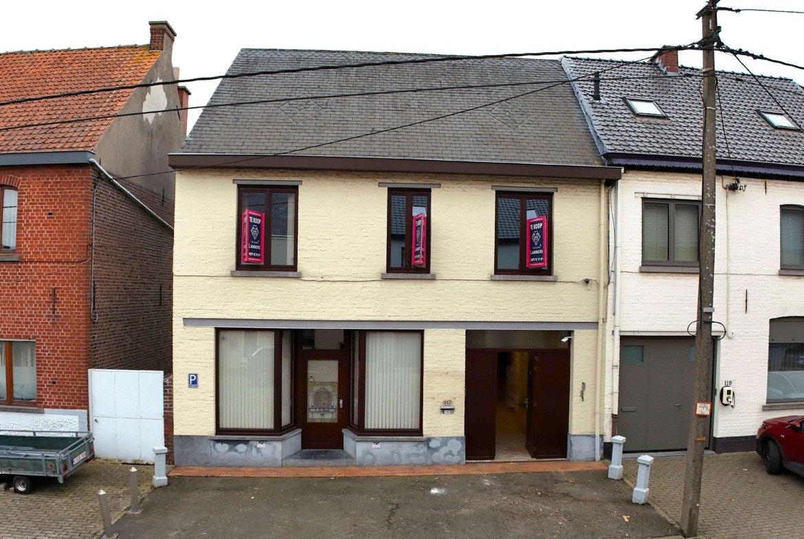 Grote woning met winkelruimte, grote garage en ateliers