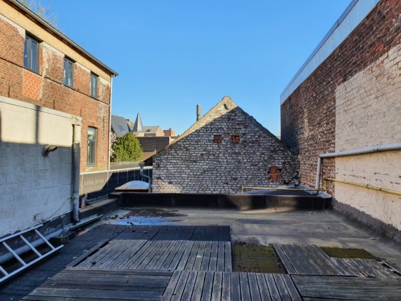 Indeling: Moderne inkomhal die ons leidt naar de traphal. Toegang tot de grote leefruimte met open keuken, gekenmerkt door de hoge raampartijen die tonnen daglicht doorlaten. Langs de keuken kunnen we naar het grote rustige terras van 35 m² groot, ideaal voor een zomers aperitiefje! De traphal op het eerste geeft ons ook toegang tot de ruime badkamer met ligbad, lavabomeubel, toilet, douche en voldoende kastruimte. Er is ook nog een bureaukamer (of berging, eerste slaapkamer,…) op het eerste verdiep.