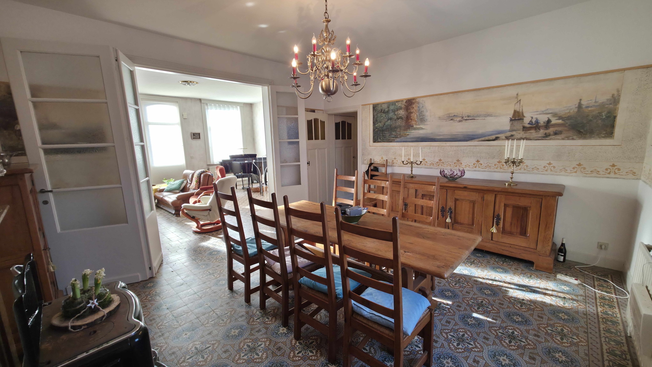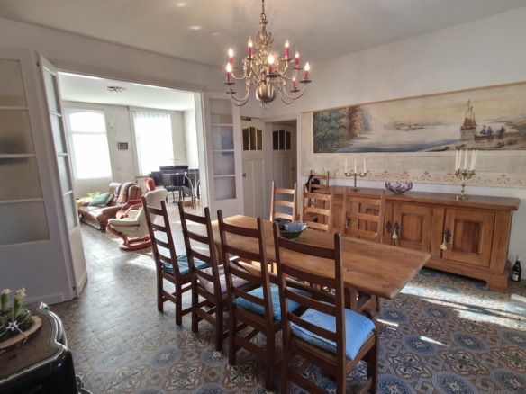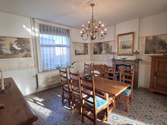 Pal in de dorpskern van het charmante Zarlardinge bevindt zich deze imposante woning met grote privatieve binnenkoer (kasseien) en ruime stallingen. Een eigendom die authenticiteit ademt dankzij de hoge plafonds, prachtig bewaarde patroontegels, unieke originele muurschilderingen, karaktervolle deuren en tal van andere waardevolle elementen.