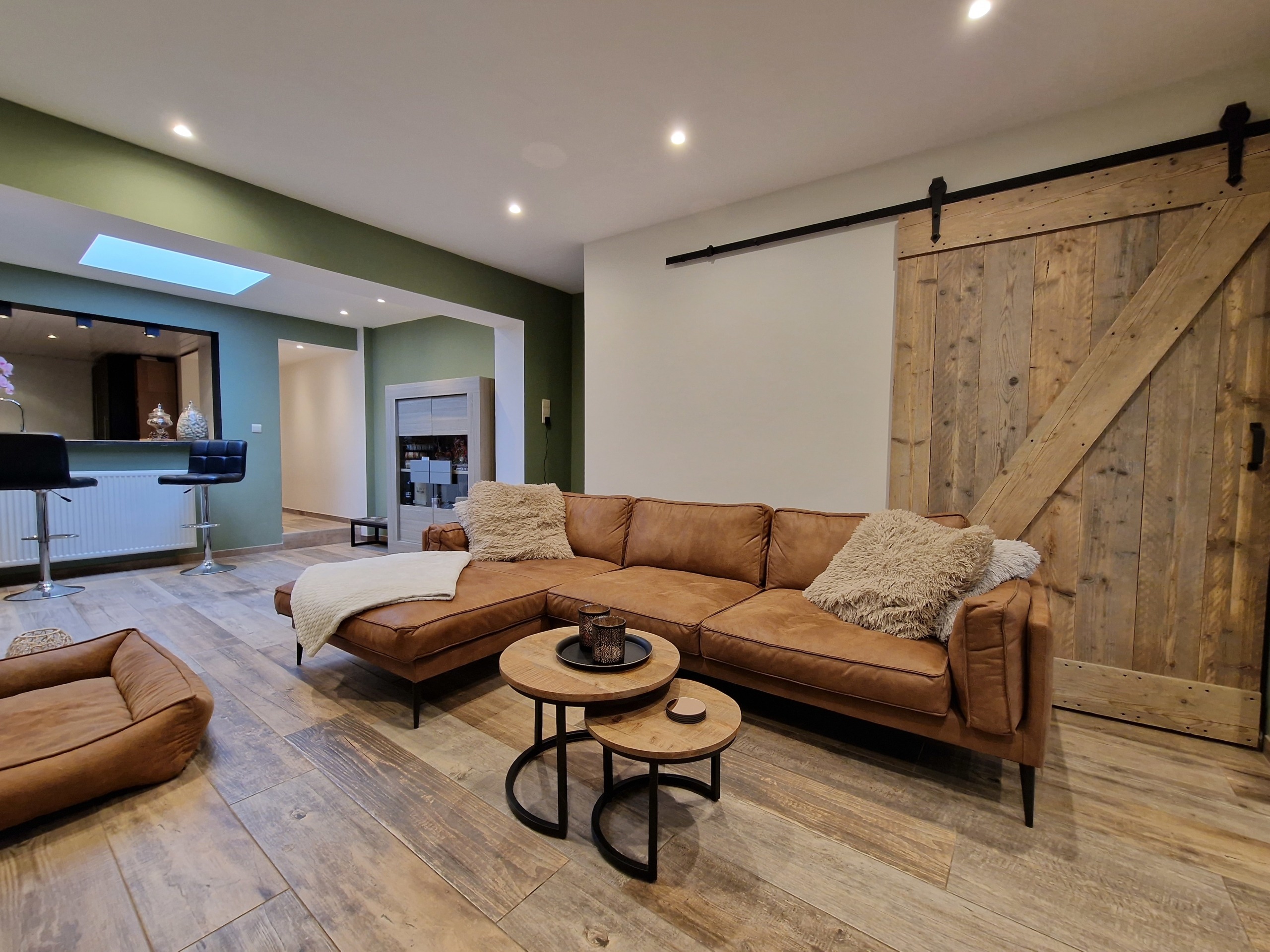 Leuke keuken waar het contact met de leefruimte optimaal is. Gang naar de splinternieuwe badkamer met grote regendouche, dubbel lavabomeubel en een hangtoilet. Verder brengt de gang ons naar een grote achterkamer met bergruimte en veel natuurlijk licht die uitgeeft op het aangename terras.
