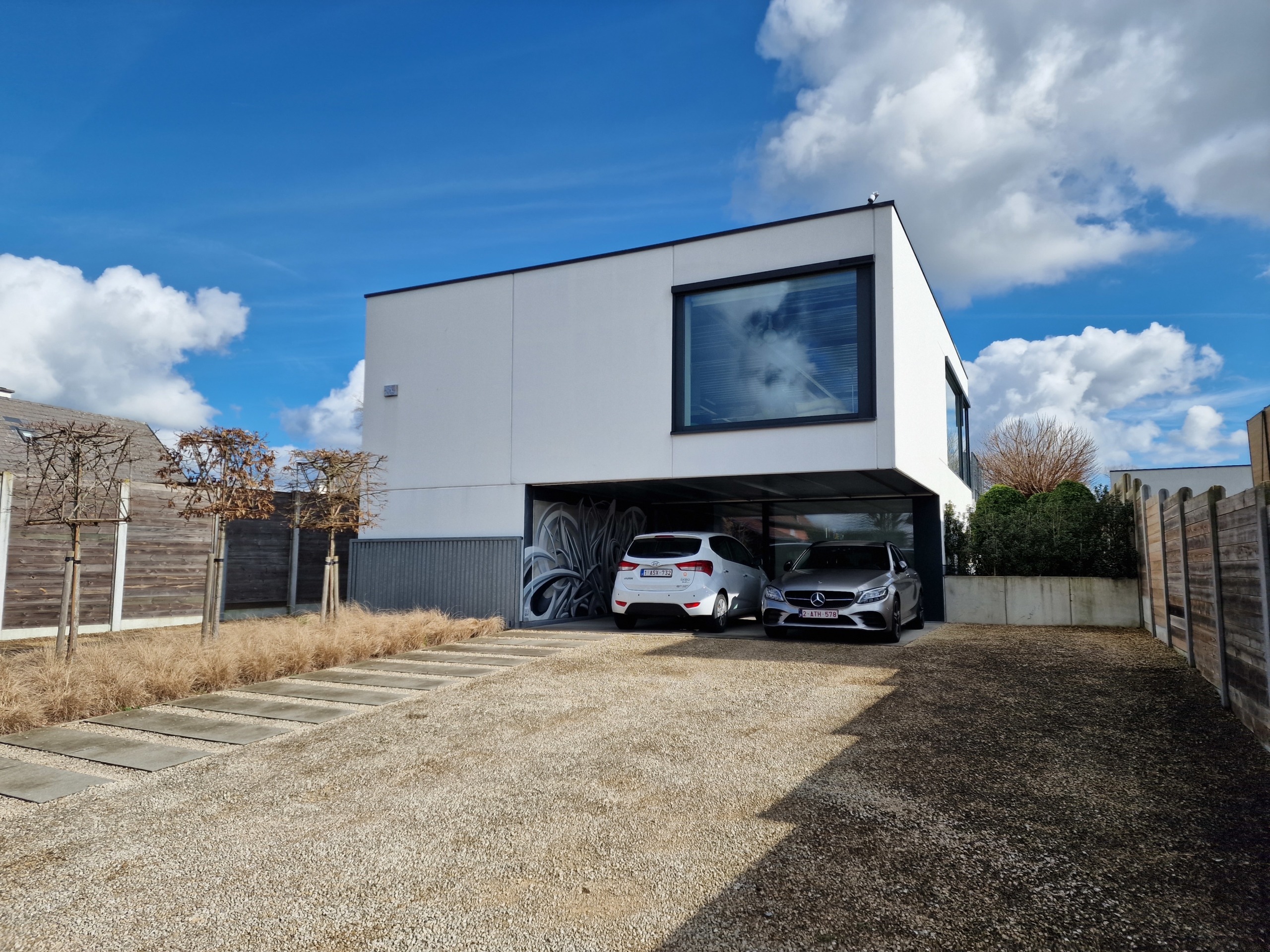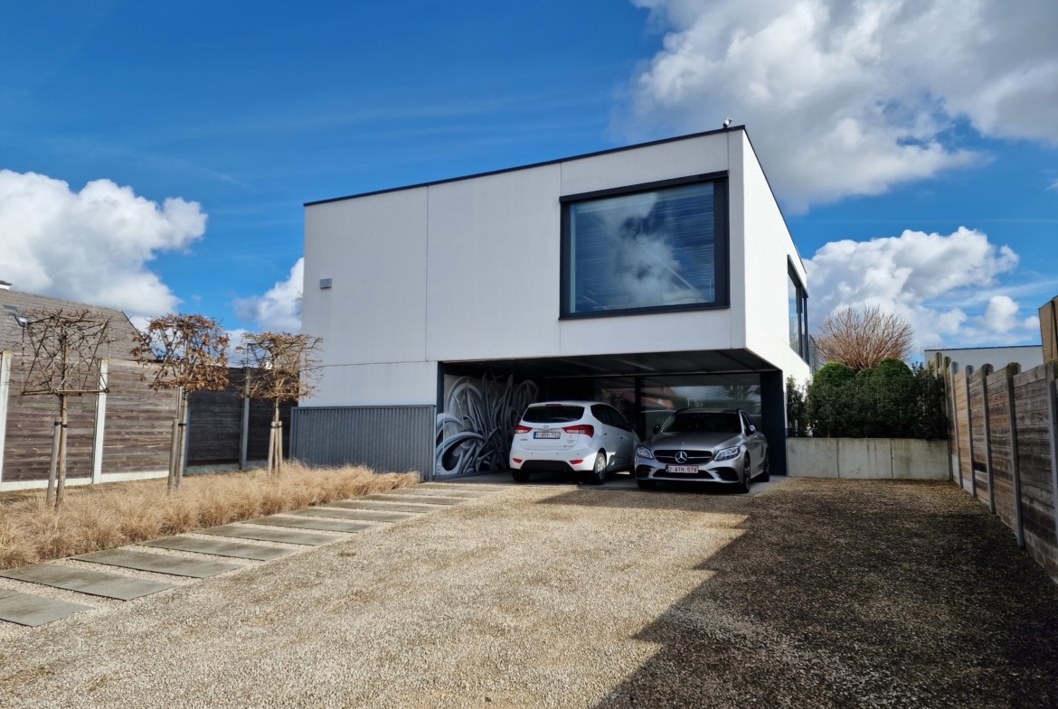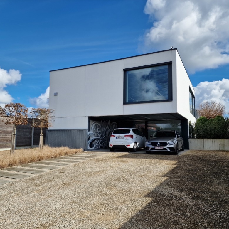Naast een ruime oprit met meerdere parkeerplaatsen is er de carport die plaats biedt aan 2 wagens.