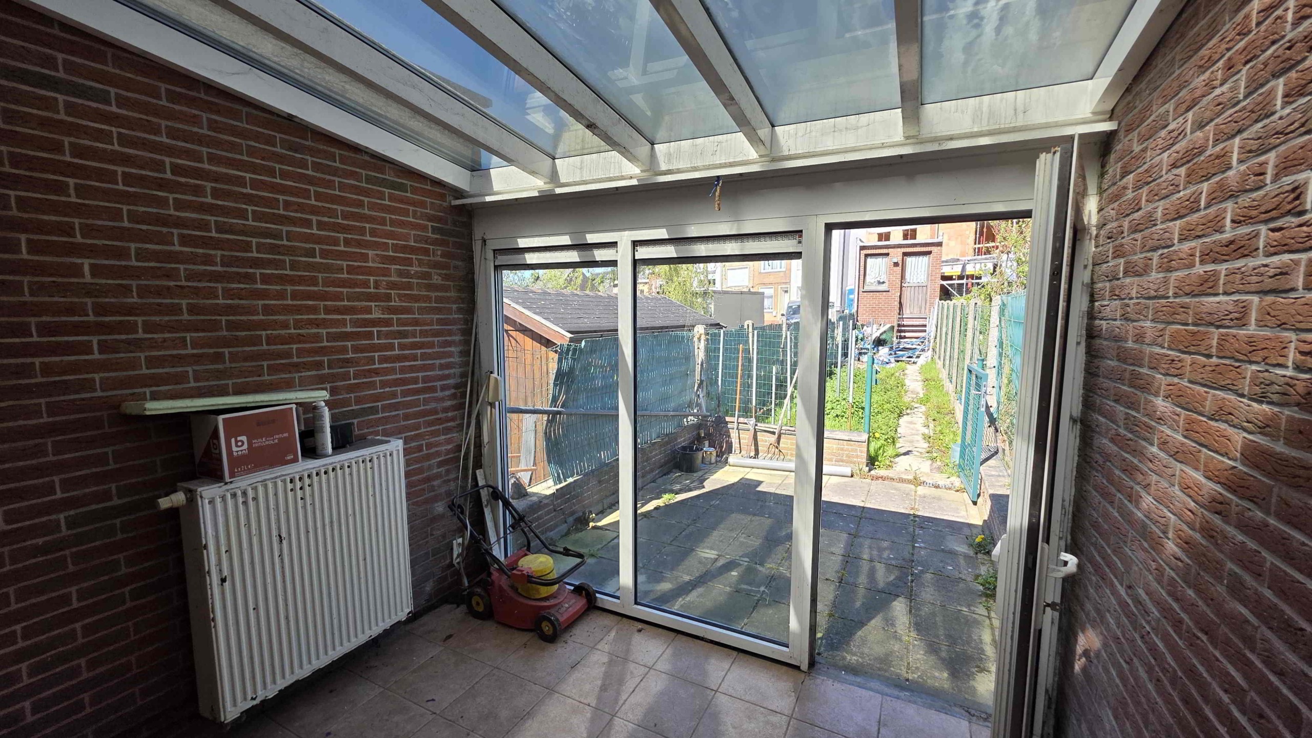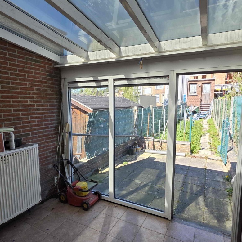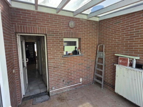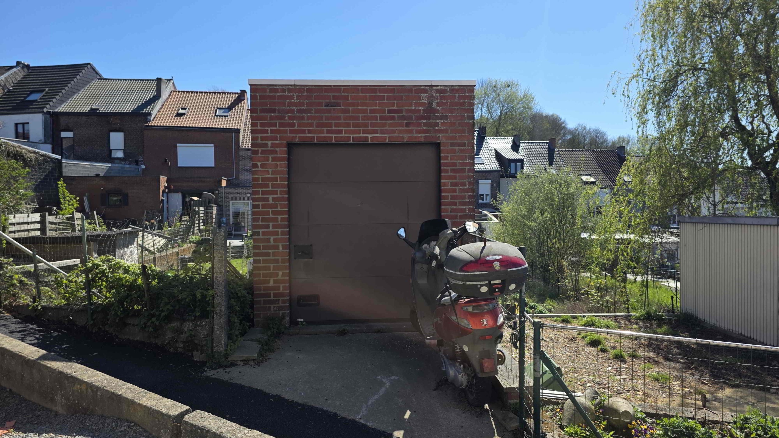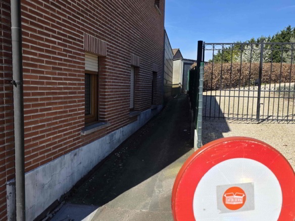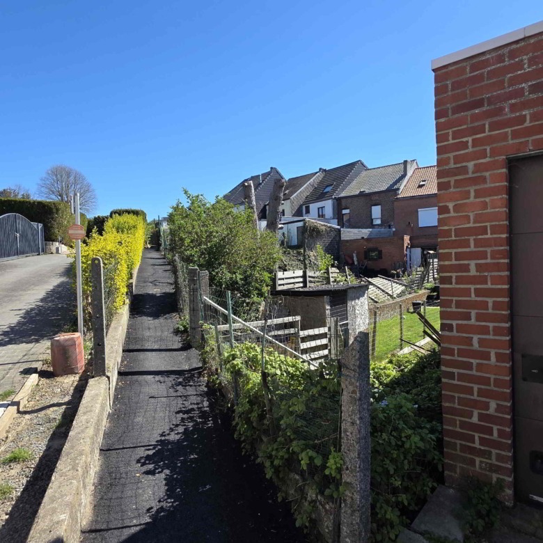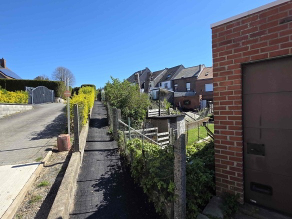 Achteraan de tuin is er bovendien een extra toegang via de Sint-Adriaansstraat. Daar staat een kleine garage met sectionaalpoort en een keldertje, perfect als stallingsruimte voor een kleine wagen, fietsen of ander materiaal.