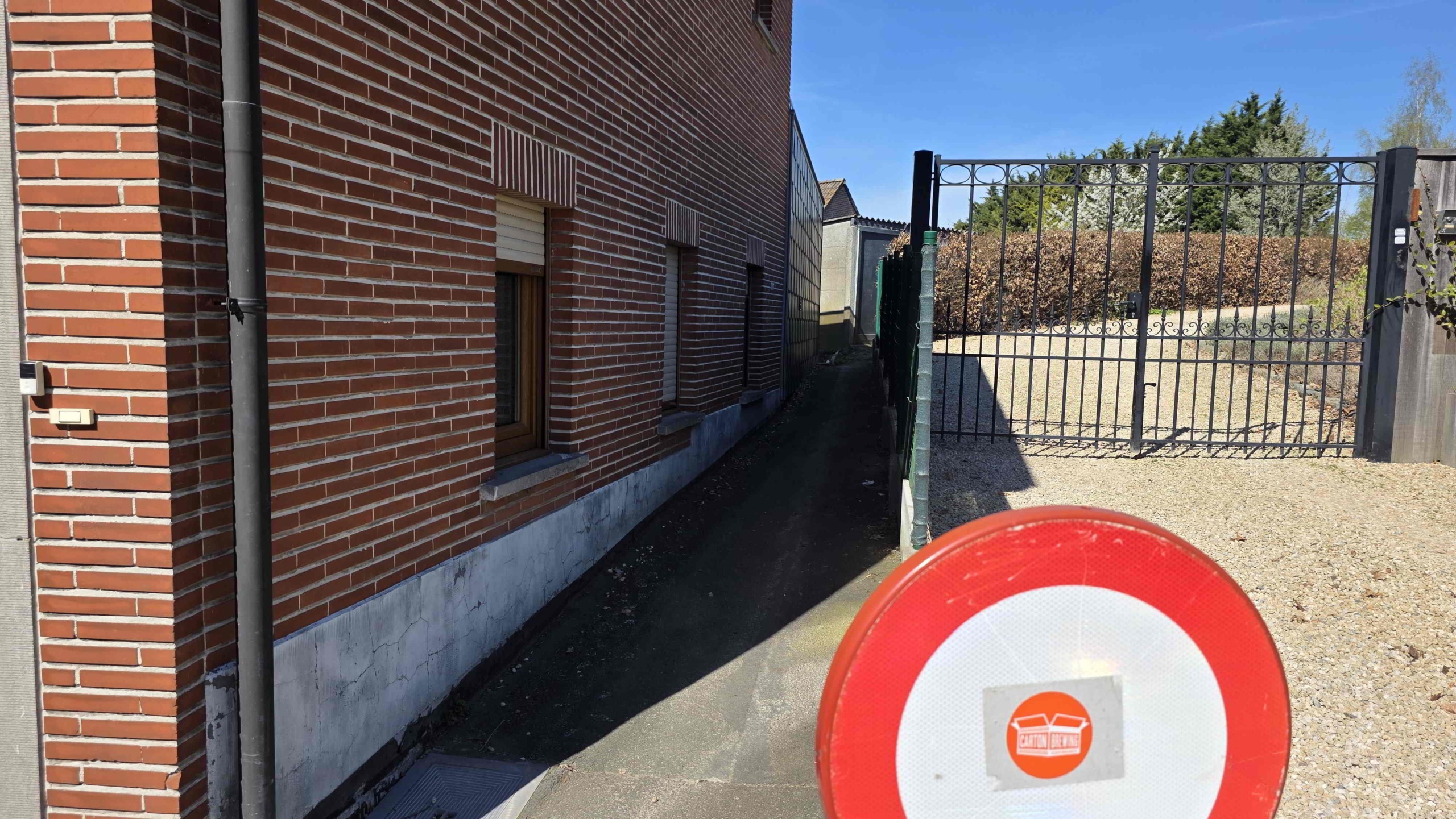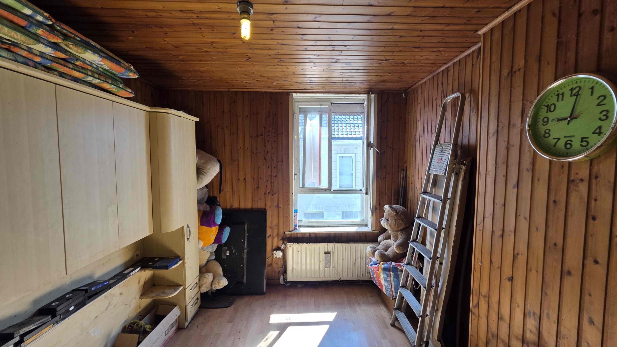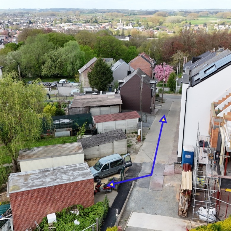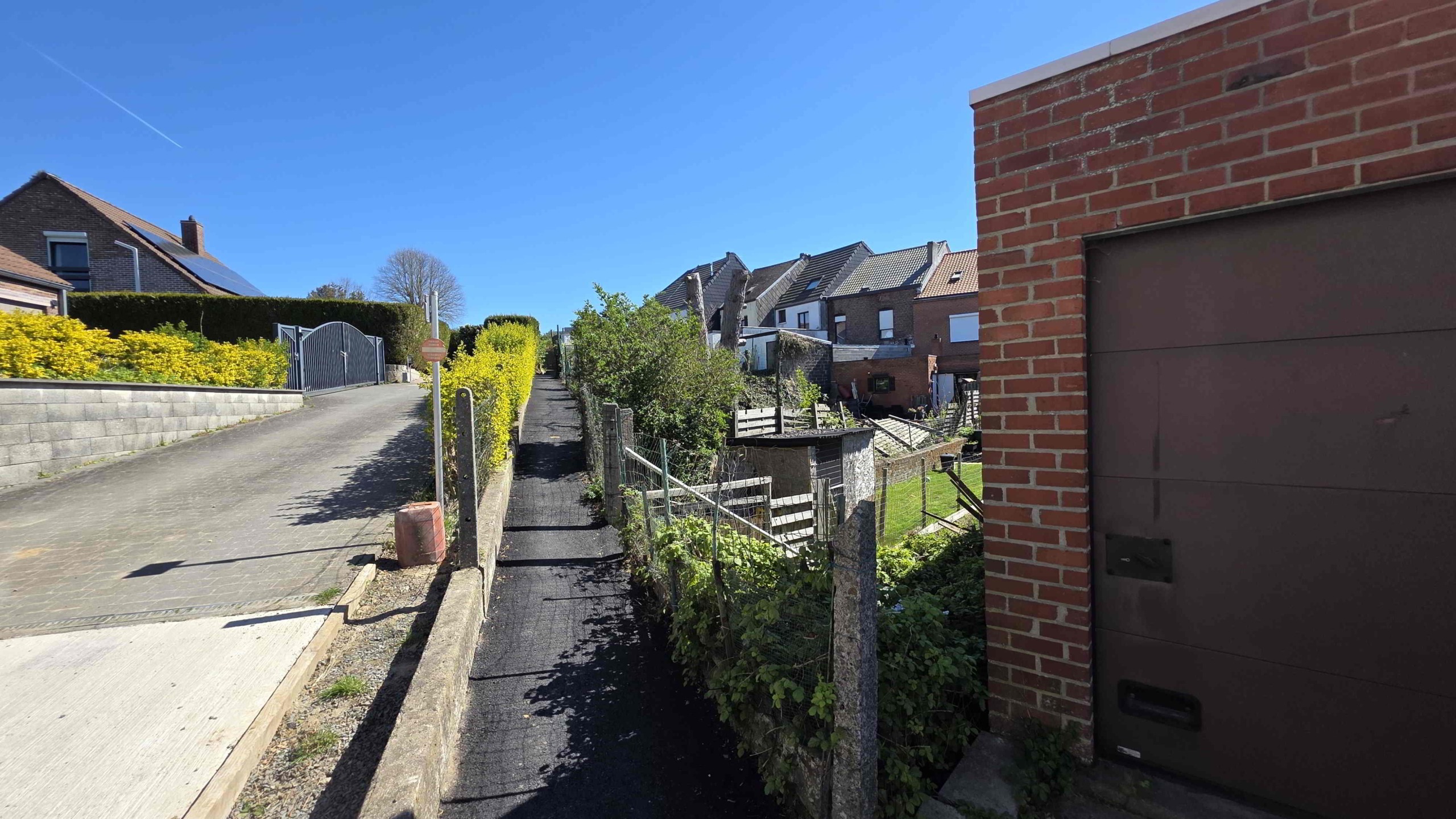 Achteraan de tuin is er bovendien een extra toegang via de Sint-Adriaansstraat. Daar staat een kleine garage met sectionaalpoort en een keldertje, perfect als stallingsruimte voor een kleine wagen, fietsen of ander materiaal.
