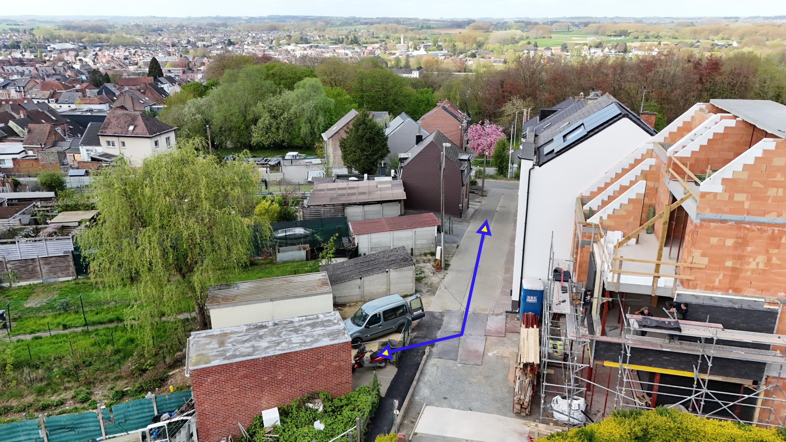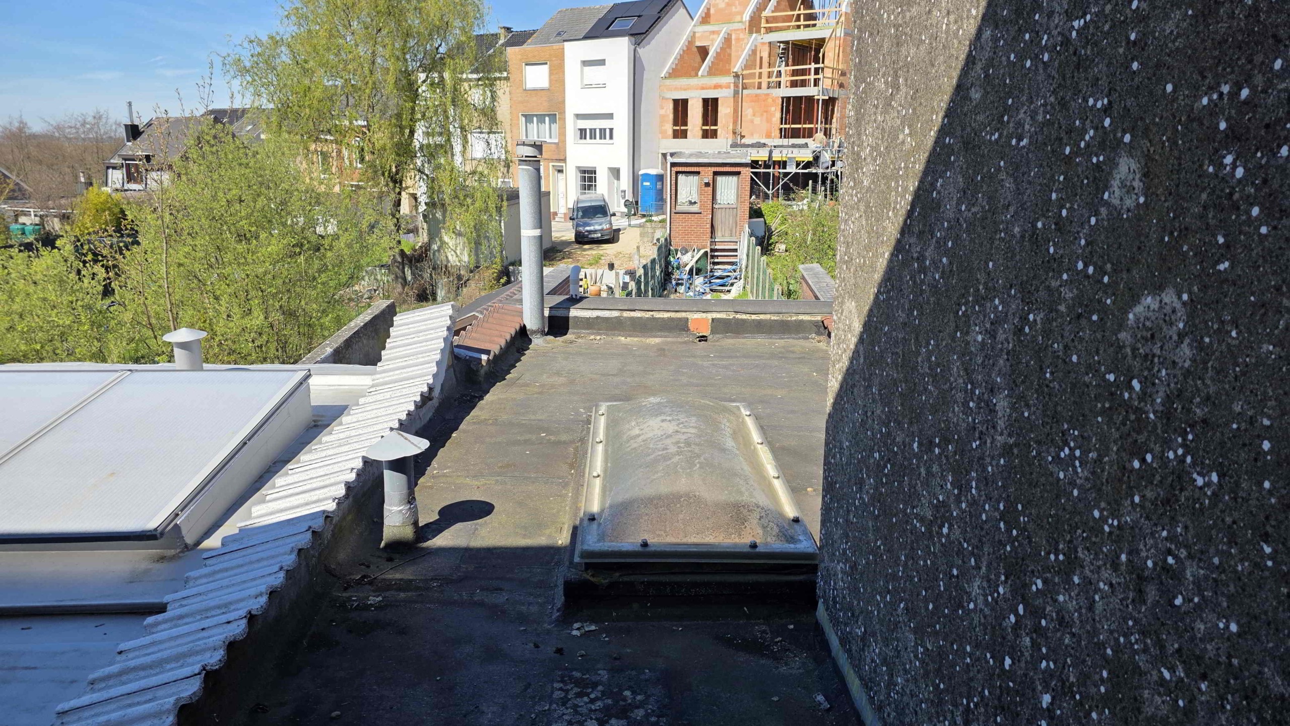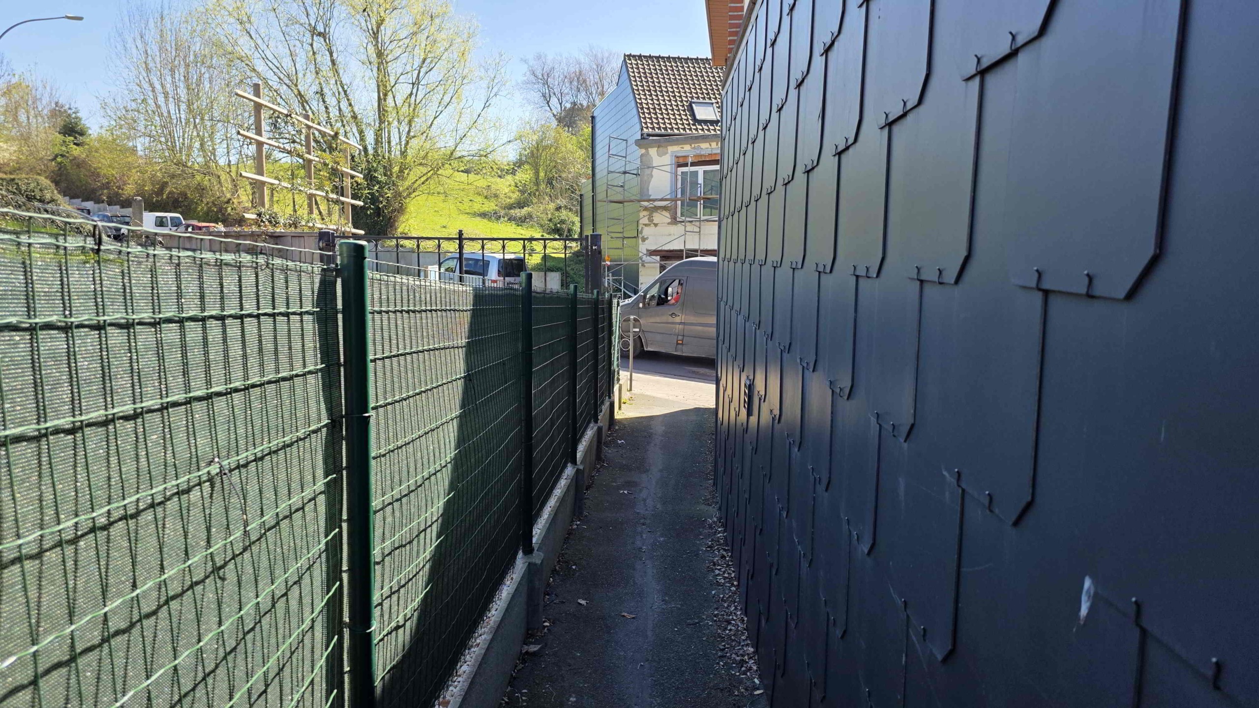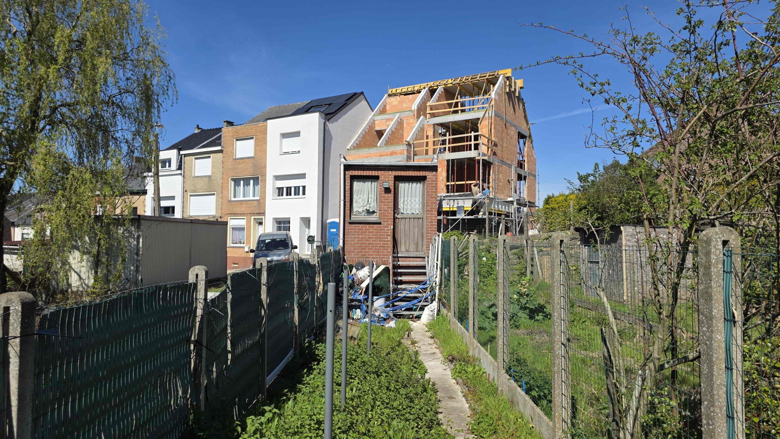 Achteraan de tuin is er bovendien een extra toegang via de Sint-Adriaansstraat. Daar staat een kleine garage met sectionaalpoort en een keldertje, perfect als stallingsruimte voor een kleine wagen, fietsen of ander materiaal.